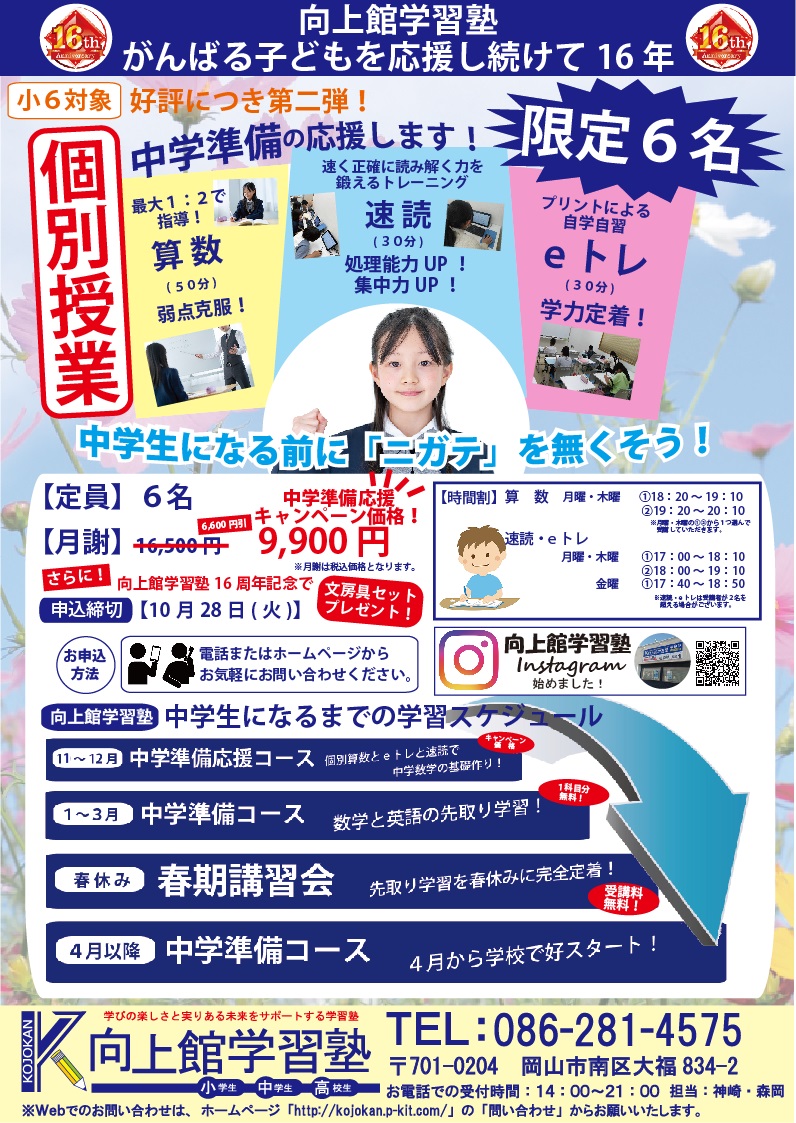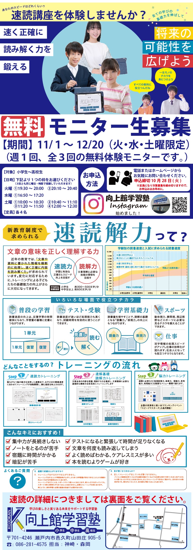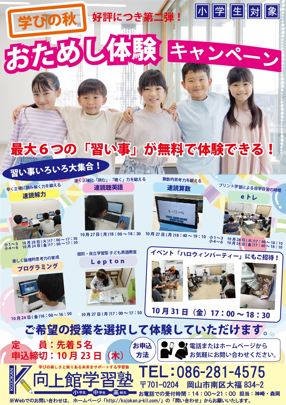 向上館学習塾では、随時無料体験を受け付けておりますので、お気軽にお問合せください。