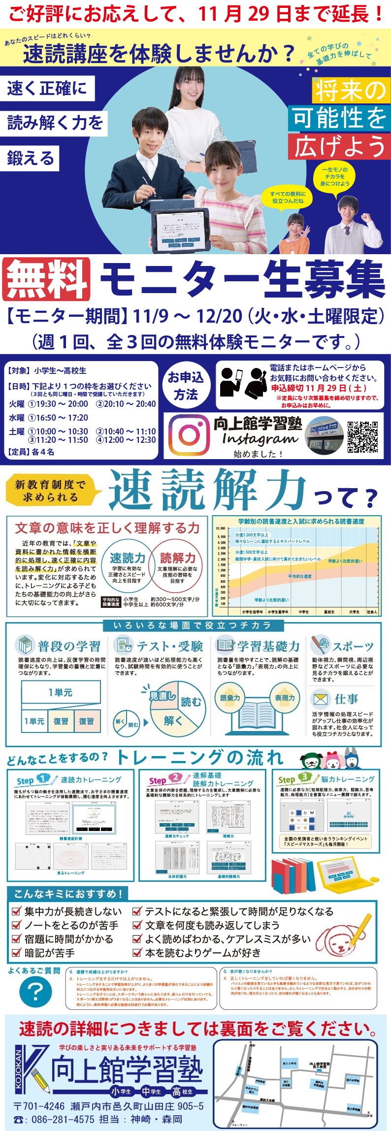 邑久教室 速読解力講座無料モニター生募集延長のお知らせ